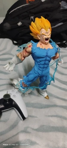 Unleash the fierce power of the Saiyan Prince with this stunning Majin Vegeta figure from the iconic Dragon Ball Z series. Standing at an impressive 11 inches tall, this meticulously crafted PVC statue captures Vegeta in his formidable Majin form, showcasing the raw intensity and power of his Super Saiyan transformation. This high-quality figurine features Vegeta in a dynamic battle-ready pose, his muscular form tensed and ready for action. The figure perfectly captures his signature scowl and the distinctive "M" mark on his forehead, symbolizing Babidi's control. The figure's intricate details bring the character to life, from his spiky golden hair to the defined musculature visible through his battle-worn Saiyan armor.