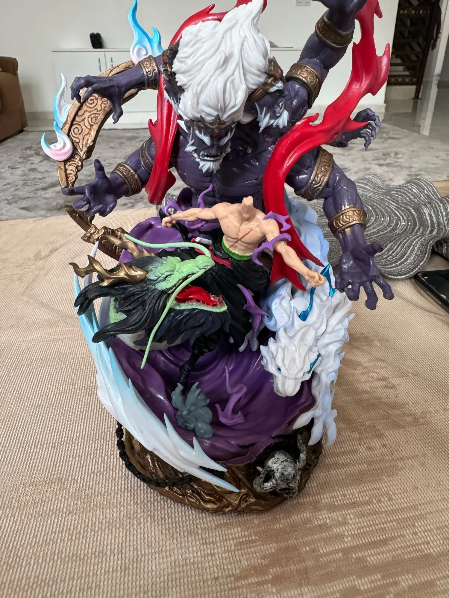 Bring the world of One Piece to life with this amazing Zoro figurine. Made of high-quality PVC material, this 22cm/8.5in action figure is the perfect addition to any anime lover's collection. Featuring intricate detailing and capturing Zoro's iconic look, this figure is a must-have for fans of the hit TV show. Ideal for all occasions, this Zoro figurine is a great gift for lovers of the franchise or collectors of anime merchandise. It is perfect for display on shelves, desks, or anywhere you want to show off your love for One Piece. Add this figure to your collection today and bring home a piece of the magic that is One Piece.
