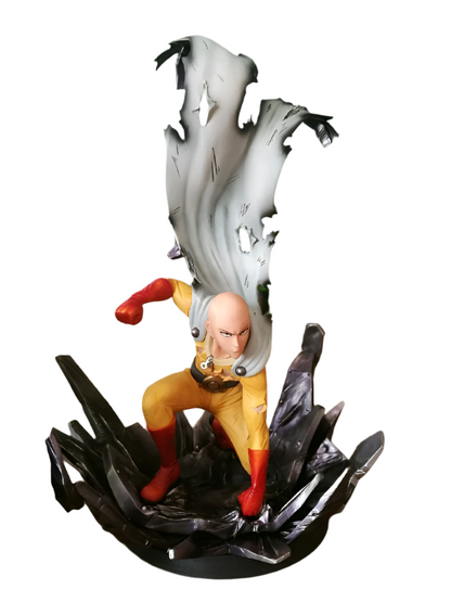 • Smashing Ground Pose: Saitama is sculpted mid-strike, fist to the ground, with debris and shockwaves erupting around him.